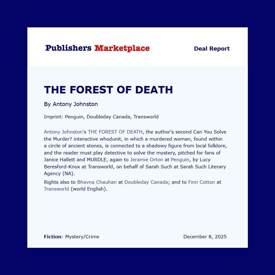 Antony Johnston has sold a sequel to his best-selling Can You Solve the Murder?, The Forest of Death!