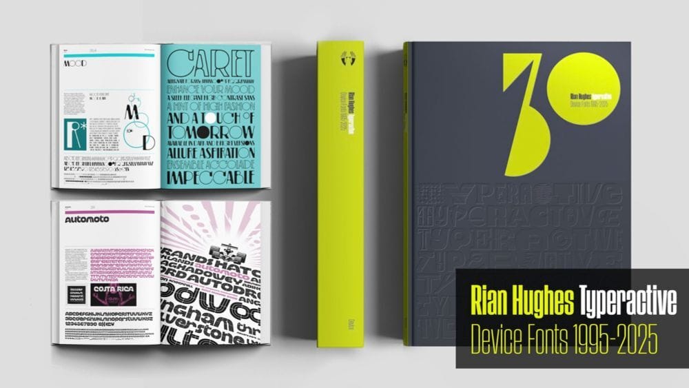 Rian Hughes: Typeractive is the great designer’s collection of his company’s fonts. (Yes, and it’s amazing!) It’s a “sumptuous, 600-page hardback, showcasing complete glyphs sets, specially-designed type specimens, notes on process and background research, and hundreds of examples of type in use.” (If you back the project you get an exclusive font.)